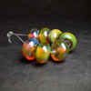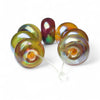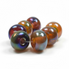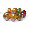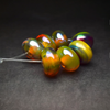 All crafted from transparent glass, these seven beads boast a palette ranging from rich orange to passionate reds and deep greens. Depending on how the light strikes the beads, they shift hues from being lighter to becoming darker. Each bead is kissed with a pretty iridescent shine that brings a touch of magic.
