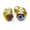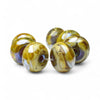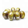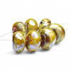 Seven beads that boast a palette of opaque and transparent glass in soft creams and light browns. Each bead shimmers with an iridescent touch of bronzed gold and silver, creating a dreamy, ethereal feel. Perfect for crafting a piece that captures the magic of a sunlit morning or the gentle glow of twilight.