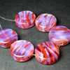 Introducing our "Mystic Reds" glass beads—a delightful blend of opaque and transparent red glass mixed with milky white hues. These six large, round, flat beads are perfect for adding a touch of warmth and elegance to any jewelry piece or craft project. Whether you're crafting for a special occasion or just for fun, these beads are a versatile choice for every season.