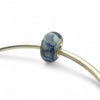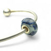 This fully cored .925 sterling silver glass charm bead is made with an opaque light blue that is adorned with swirls of dark blue. This pretty bead is one of a kind and captures the essence of a seaside view. Crafted with love and sterling silver, this bead invites you to add a touch of whimsy and wonder to your collection.