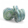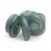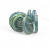 Discover the charm of these seven handmade glass beads. Each bead, a unique disc, radiates a modern touch. Crafted with love, their transparent glass reveals a dance of subtle blue, sparkled green, and milky white. Perfect for adding a refreshing winter vibe to your jewelry or craft project. Let them inspire you. Create something beautiful today.