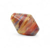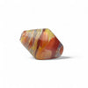 This contemporary bicone focal bead is a true original—crafted entirely freeform. The wonderful fusion of reds, yellows, and oranges is marbled with subtle hints of grayish blue, creating an eye-catching color palette.